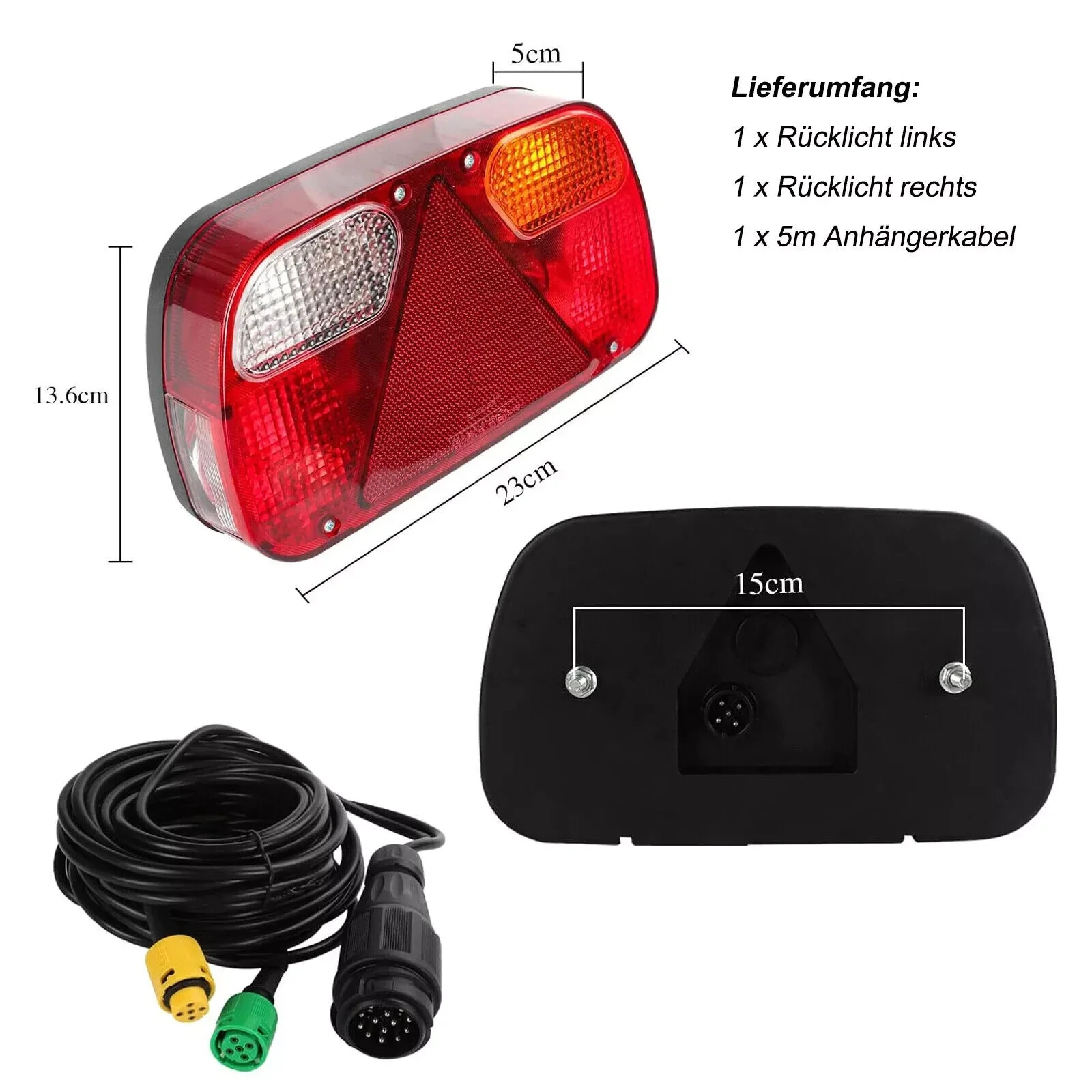 7 Funktionen: Eingebautes Blinker, Standlicht, Bremslicht, Nebelschlusslicht links, Rückfahrlicht, Kennzeichenlicht, Dreieck reflektor.